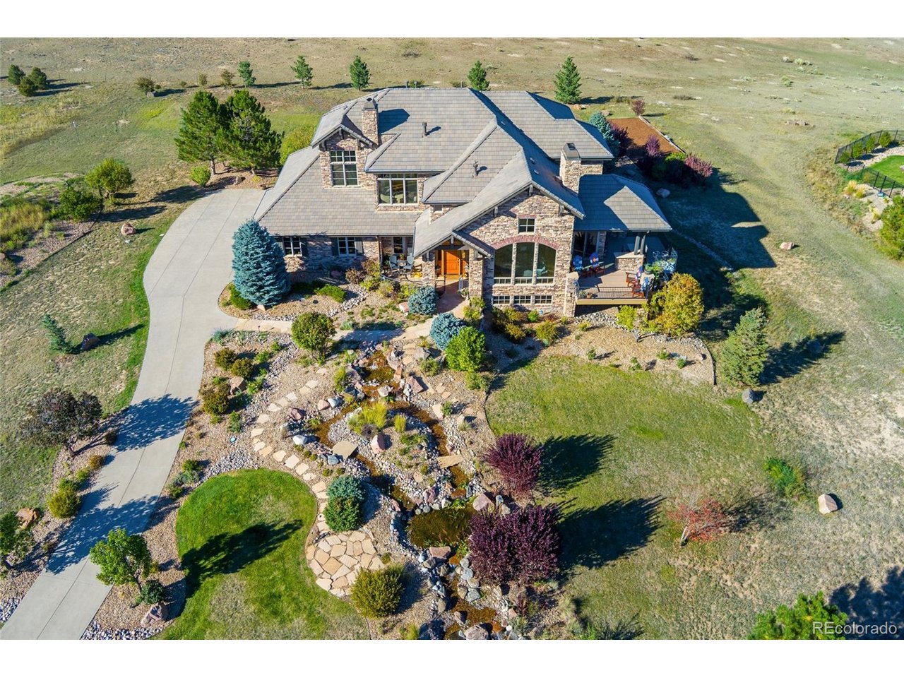 Welcome to this exquisite mountain contemporary retreat in the prestigious Pradera community, where modern design meets breathtaking views. Walls of windows and soaring ceilings fill the home with light, highlighting panoramic valley vista views. The chef's kitchen features premium finishes, high-end appliances, and seamless flow to the open dining and living areas. Step onto the expansive deck with built-in BBQ, smart speakers, and space for entertaining under the stars. The primary suite offers a cozy fireplace, spa-like bath, and walk-in closet. The second floor features two additional rooms, each with its own full en suite bathroom. The lower level includes a media area, guest suite, full bath, and fitness room. Recent enhancements include : 3 New Upgraded furnaces and AC compressor, Exterior paint, smart motorized window shades, LED lighting throughout, exterior lighting, and interior paint in multiple bedrooms, landscaping upgrades, dual water heater replacements, new wine refrigerator, smart thermostats, irrigation controller, and updated shower heads. Located within the quiet, prestigious Pradera community with a private golf course and abundant wildlife, this mountain modern masterpiece offers a lifestyle of luxury, comfort, and connection to nature.